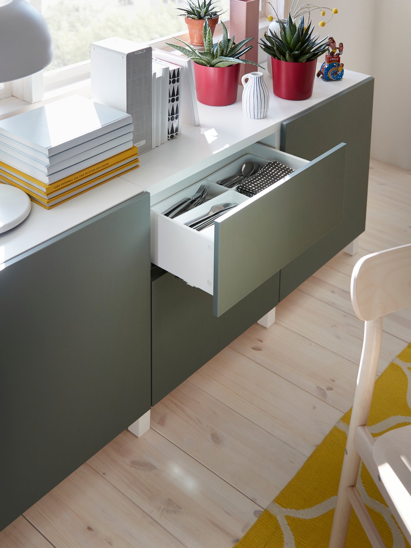 Decorate your space with HAUGA white or grey living room furniture sets. These multitasking storage units can both hide away clutter and display your most precious belongings.